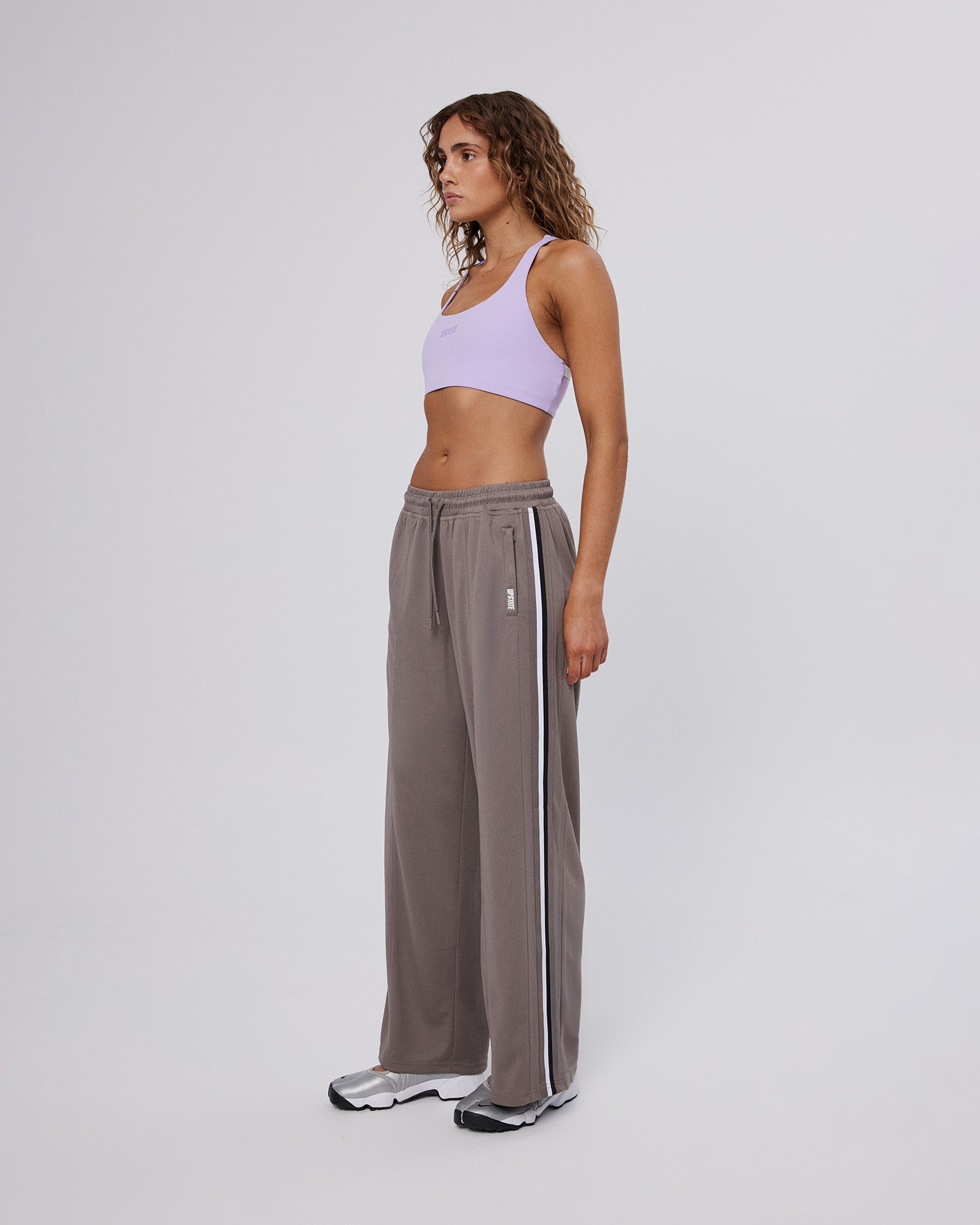 Featuring a mid-rise fit with an elasticated waistband and adjustable ties, the Apex Track Pant is finished with side leg zip pockets, contrast stripe taping, and an Upstate printed logo on the welt pocket, offering a clean, sport-led look on and off the track.