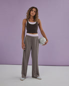 Introducing the Apex Track Pant in Cinder, a warm charcoal grey tone with subtle taupe undertones designed for training and everyday wear. Crafted from lightweight tricot mesh, this full-length pant delivers breathable comfort with a relaxed drape, while remaining comfortably secured at the waist.